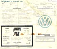 1977 SCIROCCO BASE PRICE OPTIONS, ACCESSORIES, MISC. DESTINATION CHARGE TOTAL Dealer installed accessories sticker |